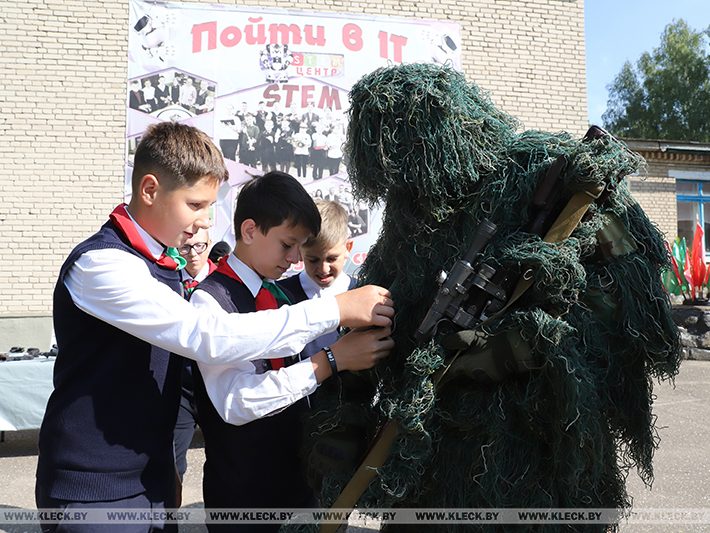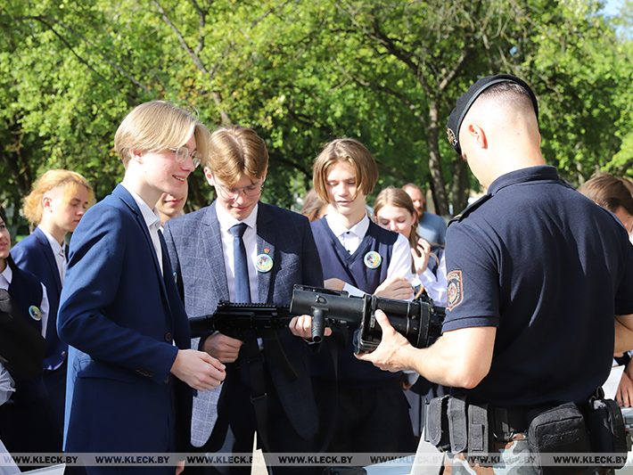 На территории Рассветовской СШ во время праздника знаний работали выставочные площадки. Школьники смогли увидеть современные специальные средства, экипировку и оружие сотрудников ОМОН УВД Минского облисполкома, а также посидеть в служебных машинах ГАИ.