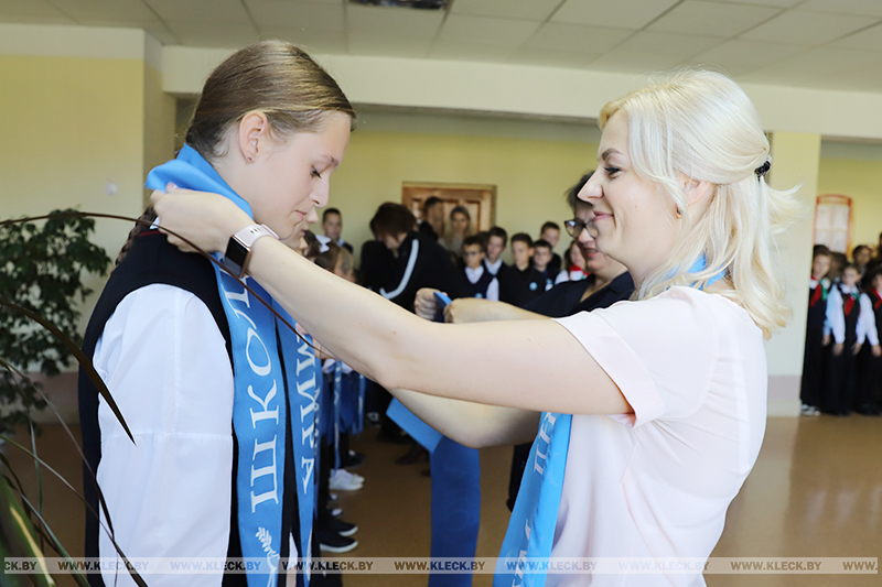 Новички произнесли слова клятвы с обязательством помогать людям и сохранять мир. Ребята получили синие шарфы с логотипом Белорусского фонда мира, означающие их принадлежность к миротворческому отряду.
