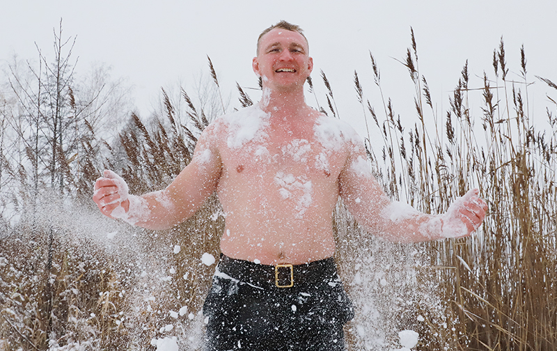 В 13.00 (примерно) зрители смогут понаблюдать за процессом закаливания (обтирание, обливание и растирание снегом).