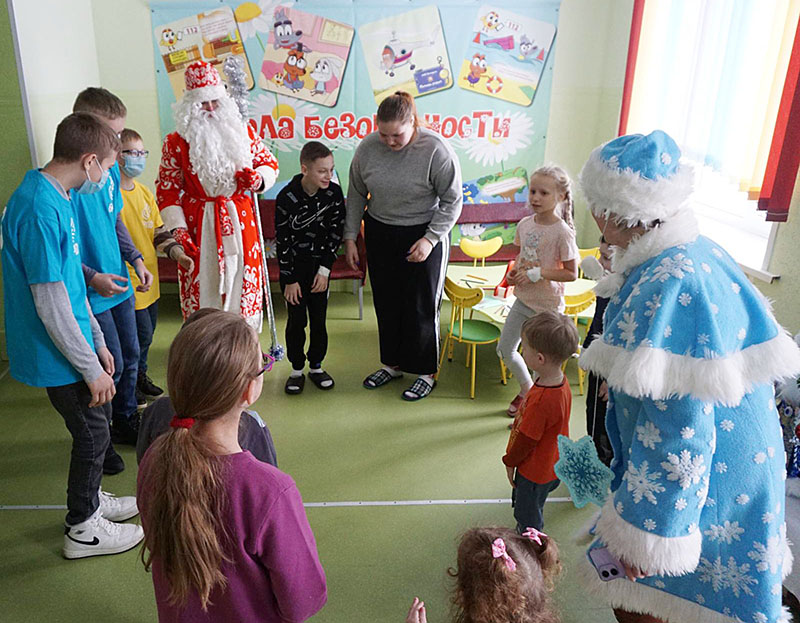 Инициатором сказочного мини-представления для ребят, проходящих лечение в стационаре, стал Клецкий районный исполнительный комитет, районное отделение РОО «Белорусский детский фонд», комиссия по делам несовершеннолетних РИК. Вместе с Дедом Морозом и Снегурочкой, ребятами из общественной организации «БРПО» председатель районного отделения детского фонда Елена Алексейчик пришла к ребятам с подарками.