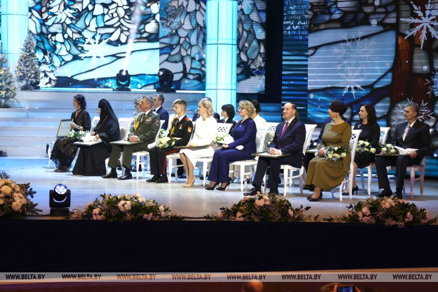 “В каждом наградном листе сегодняшних лауреатов – история всей нашей жизни, история страны, – подчеркнул белорусский лидер. – Все вы формируете образ будущего Беларуси, особенно находящиеся в этом зале. Мы формируем будущее Беларуси, сохраняя наше культурное достояние, возрождая старинные традиции народного мастерства и творчества в фестивалях и праздниках, давая новую жизнь шедеврам высокого искусства, встречая первыми появившихся на свет малышей, воспитывая подрастающее поколение на исконных духовных ценностях, проявляя милосердие и принимая участие в судьбе соотечественников, нуждающихся в особой опеке, поднимаясь во славу Родины на спортивный Олимп, помогая покорить эту вершину своим воспитанникам, освещая победы наших атлетов в средствах массовой информации”.