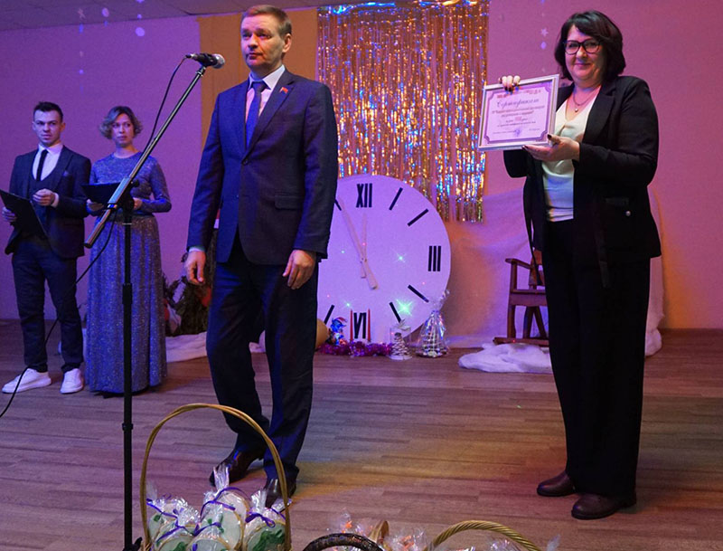 Юрий Петрович поздравил насельников дома-интерната с новогодними праздниками и Рождеством Христовым, пожелав всем крепкого здоровья и мирного неба над головой. В качестве подарка глава района вручил директору учреждения Анне Уласень подарочный сертификат на 1000 рублей.