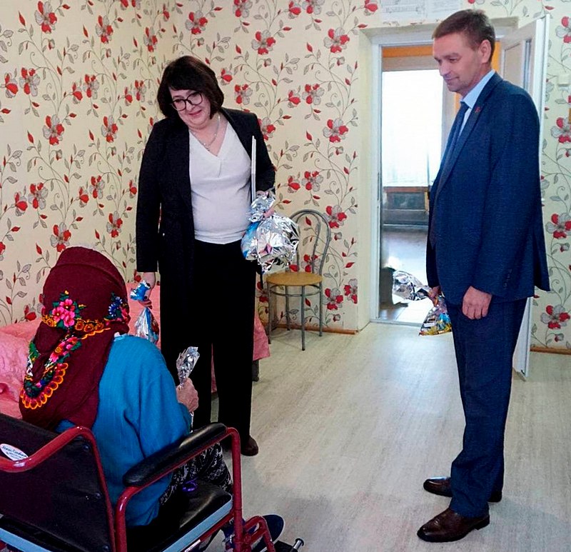 Тех, кто по состоянию здоровья не смог прийти на встречу с руководителем района, Юрий Петрович навестил по месту их проживания (в комнатах учреждения круглосуточного пребывания) и лично каждому пожелал здоровья и долголетия.