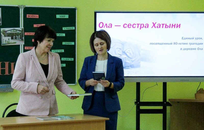 На единый урок памяти “Ола – сестра Хатыни” десятиклассники гимназии г.Клецка и их классный руководитель Жанна Александровна Макрецкая пригласили Цвирко Татьяну Константиновну, поэта, члена Союза писателей Беларуси, Минского областного клуба поэтов и композиторов «Живица».
