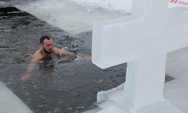 Среди тех, кто с молитвами троекратно погрузился в крещенскую купель, были Сергей Денисеня, Александр Авдей, Дмитрий Карпович и Николай Шалик.