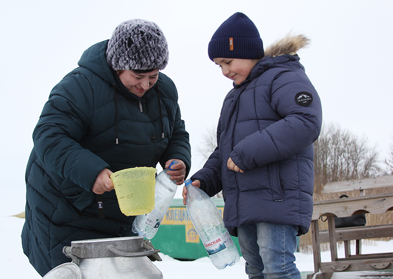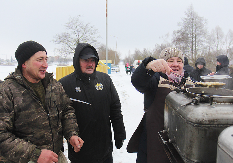 Рядом с полыньей дежурили сотрудники МЧС, РОВД, медики. В десятке метров от купели находился отапливаемый вагончик для переодевания. Собравшихся Клецкий сельскохозяйственный лицей угощал кашей и горячим чаем.