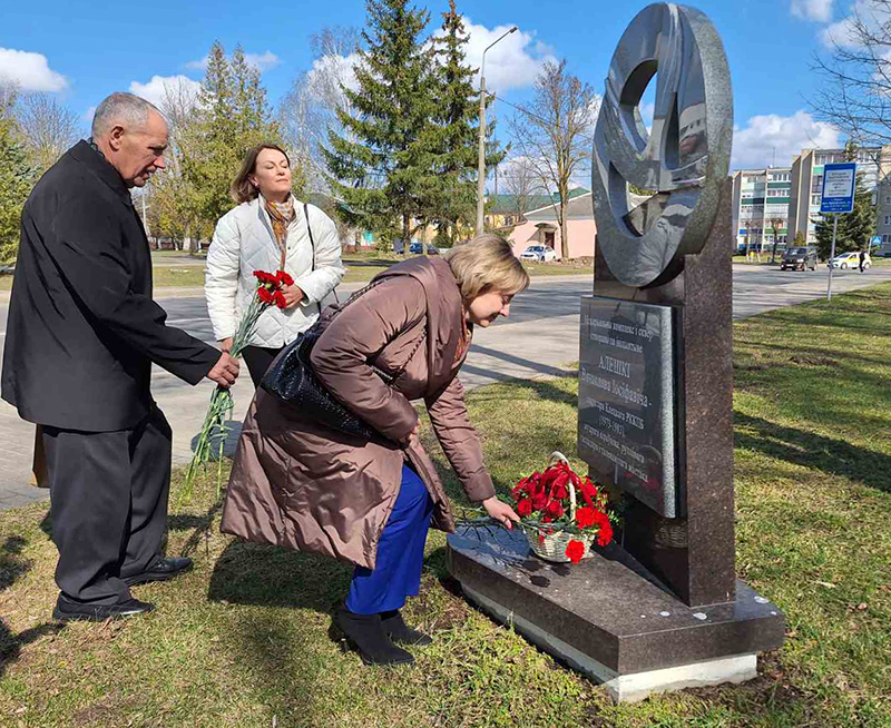 Торжество закончилось возложением живых цветов у памятного знака, установленного в честь Вячеслава Алешка в городском сквере.