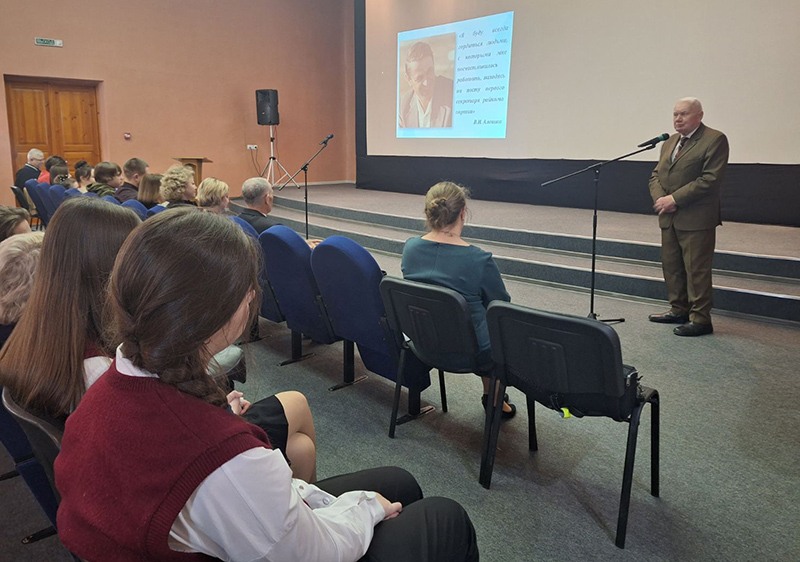 О вкладе Вячеслава Иосифовича в развитие Клетчины рассказала старший научный сотрудник музея Анна Байрошевская. Присутствующие в зале старшеклассники городских школ и гимназии внимательно слушали информацию о плодотворной трудовой деятельности первого секретаря Клецкого райкома партии, о значимых проектах, которые были реализованы благодаря ему, об его увлечениях и интересах.