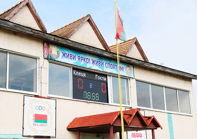Городской стадион в нашем райцентре – это домашняя арена, на которой выступает футбольная команда “Клецк” из третьего дивизиона страны и проводятся легкоатлетические соревнования.