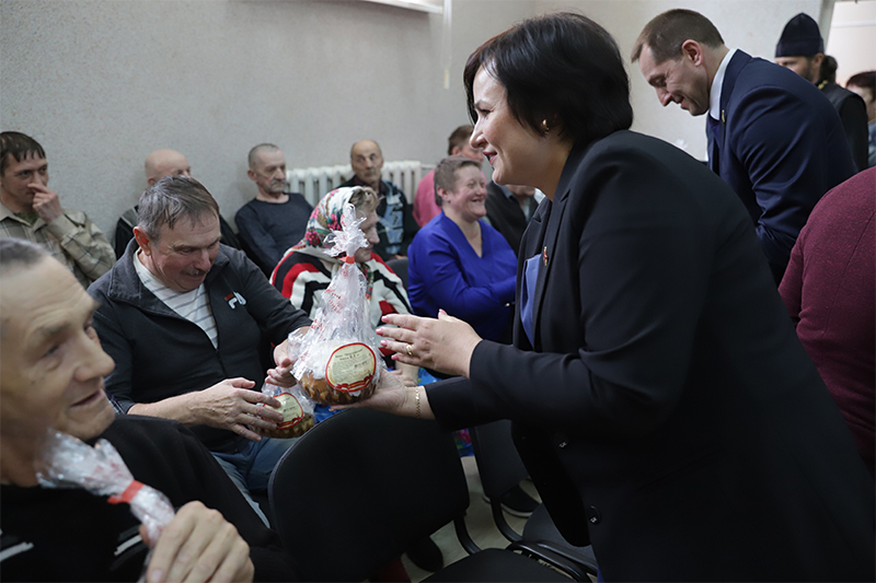 Гости поздравили постояльцев отделения со Светлой Пасхой и наступающим Днем Победы.