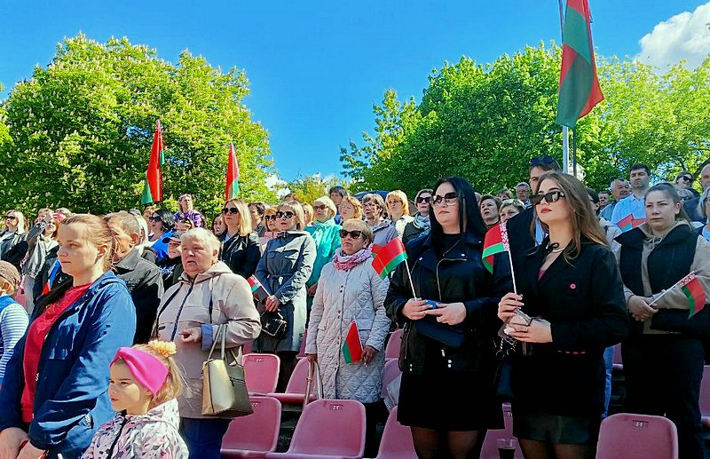 Чествование государственных символов началось с церемонии выноса Государственного флага и Государственного герба знаменной группой и исполнения гимна Республики Беларусь.