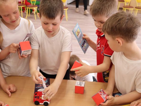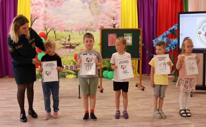 Ребята внимательно всё рассмотрели, а потом задавали много различных вопросов. Вместе с сотрудником РОЧС малыши вспомнили номера для вызова спасателей, повторили, что нужно делать, если в доме начался пожар. А также поиграли в «5 шагов спасения», сложили пазлы безопасности, просмотрели мультфильм «Волшебная книга», и затем все вместе изучили, как нужно себя вести, чтобы не произошло ЧП.