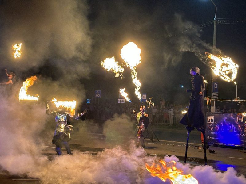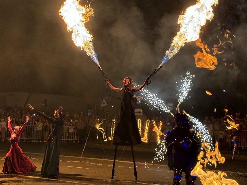Огненное шоу стало эффектным продолжением молодежного праздника.