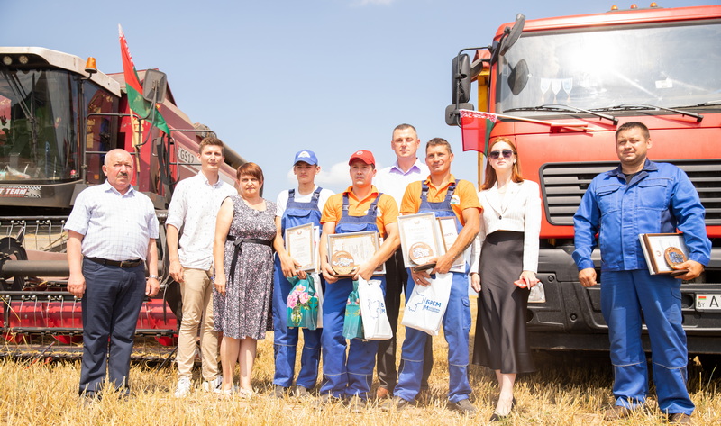 Сегодня состоялась церемония чествования лидеров жатвы. Начальник отдела идеологической работы, культуры и по делам молодежи Ольга Брановицкая поздравила от имени райисполкома Андрея Алексейчика, молодого водителя, и водителя соревнования в старшей категории Виталия Кишко, перевезших по две тысячи тонн зерна, а также молодой комбайновый экипаж в составе комбайнера Ильи Пищука и Александра Василевского с тысячным намолотом. Передовикам вручили Дипломы и подарки.