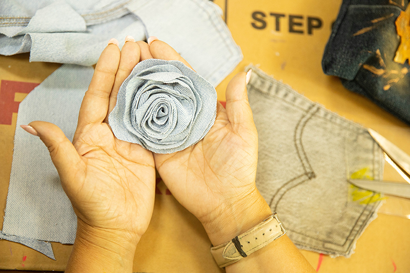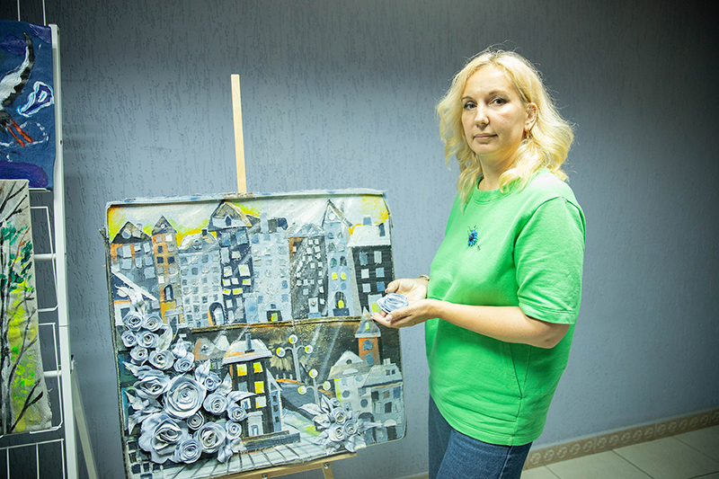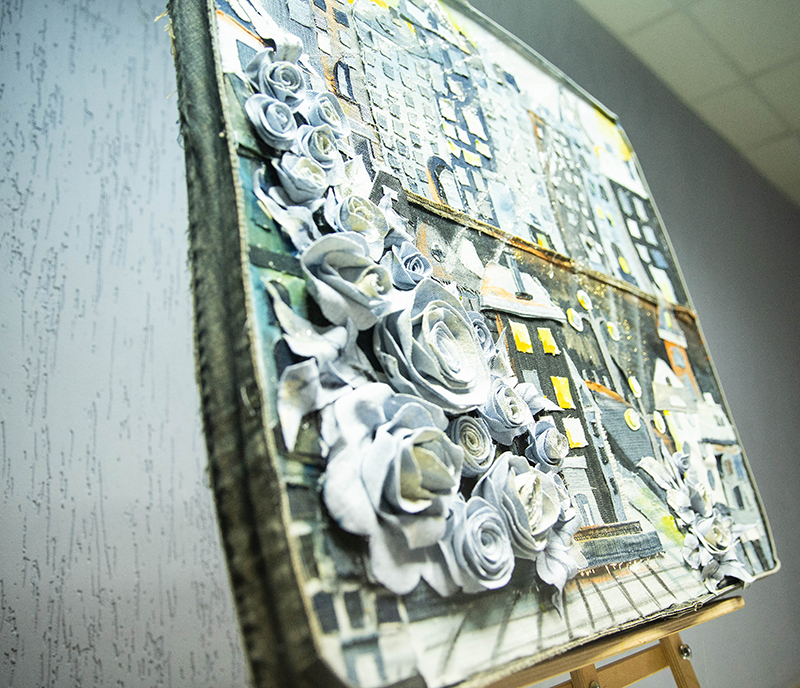 – Давно работаю с джинсовой тканью, – рассказала Мария Кисель. – Начала с ее росписи, а сейчас пришла к тому, что делаю из этого материала аппликации. В процессе создания коллекции джинсовой одежды остается много невостребованных кусочков. Из тех, что побольше, шьем сумки-шопперы и чехлы для мобильных телефонов, а из самых маленьких лоскутов делаем тканевые цветы и другие детали для картин. Получаются очень красивые композиции.