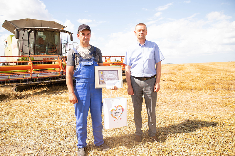 На самом деле, это очень высокая планка, дающаяся не каждому участнику страды. Об этом комбайнеру говорили председатель Клецкого райисполкома Юрий Карлович, председатель Минского областного объединения профсоюзов Виктор Малиновский, заместитель председателя Минской областной организации Белорусского профессионального союза работников АПК Александр Юрчик и председатель районной организации профсоюзов работников агропромышленного комплекса Михаил Кедык.
