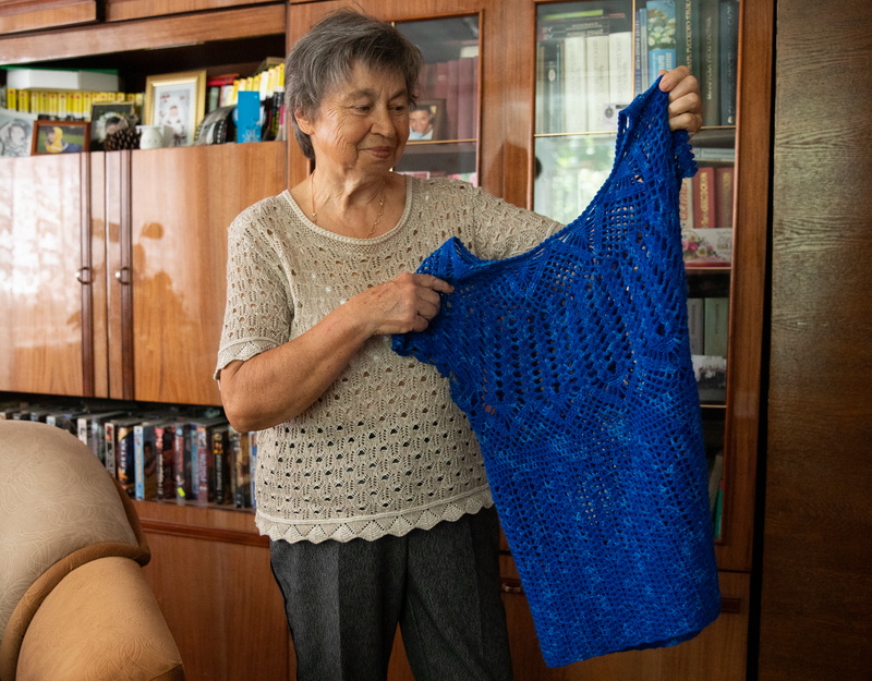 Надежда Ивановна – опытная рукодельница. Она искусно вяжет, вышивает, рисует, умеет ткать, с легкостью делает аппликации, инкрустации из соломки, панно и многое другое. Раньше свое мастерство передавала ученикам на уроках рисования и на кружковых занятиях. Ее красивые и практичные шали, безрукавки, кофты, носки, тапочки и теперь с удовольствием носят родственники.