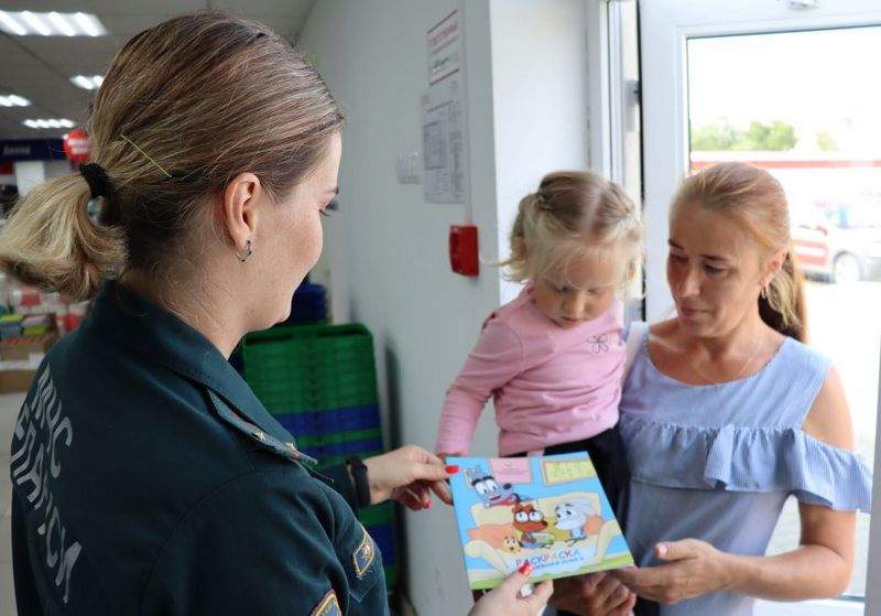 Расположившись у входа в торговый зал инспектор сектора пропаганды районного отдела по чрезвычайным ситуациям проводила с посетителями магазина интерактивные игры, направленные на изучение знания населением правил пожарной безопасности.