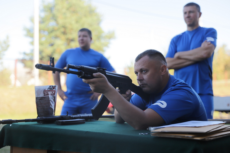Руководящие работники соревновались в стрельбе из винтовки, дартсе, велоэстафете и пробитии штрафного удара.