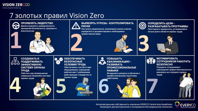 Концепция предлагает семь «золотых правил», реализация которых будет содействовать работодателю в снижении показателей производственного травматизма и профессиональной заболеваемости. Следование каждому из этих правил предполагает серьезную организационную работу и применение специального инструментария, позволяющего достичь поставленные цели.