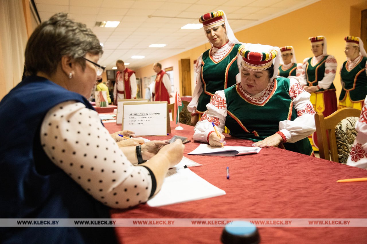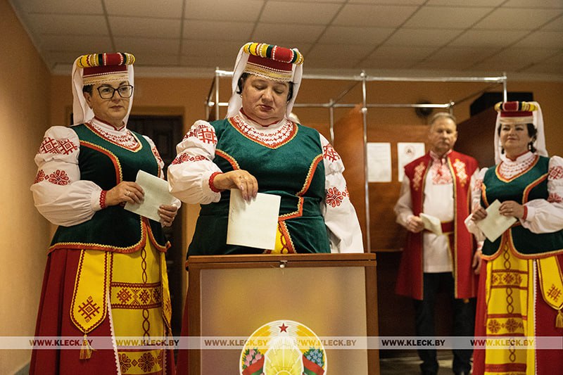 Здесь не только работают в толоке, поют хором, но даже на участок для голосования решили прийти многочисленным творческим коллективом, сразу после вечернего концерта в рамках акции «Голоса родной Клетчины».