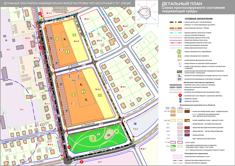 Согласно генеральному плану г. Клецка, проектируемая территория площадью 9 га является составной частью расчетно-планировочного района №2. Генеральным планом установлено функциональное зонирование городских территорий на 2035 год. В состав проектируемой территории детального плана входят следующие функциональные зоны генерального плана: