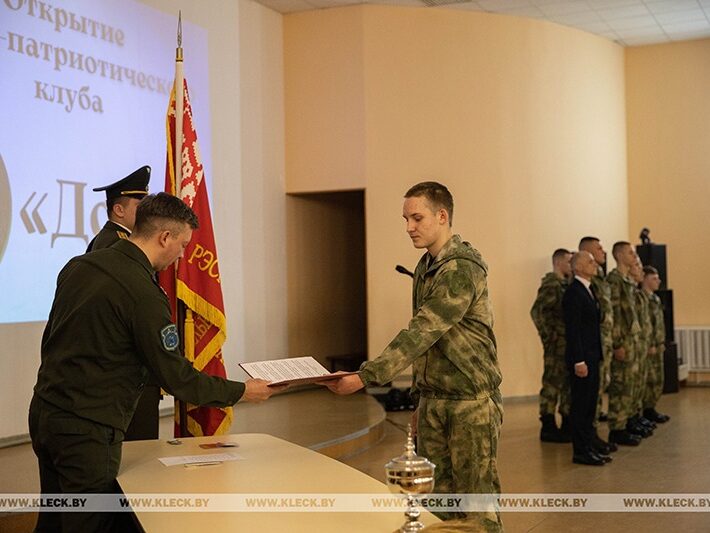 Девять старшеклассников гимназии г.Клецка вступили в ряды военно-патриотического клуба «Дозор», который открыт на базе отдельного радиотехнического батальона, базирующегося в Барановичах.