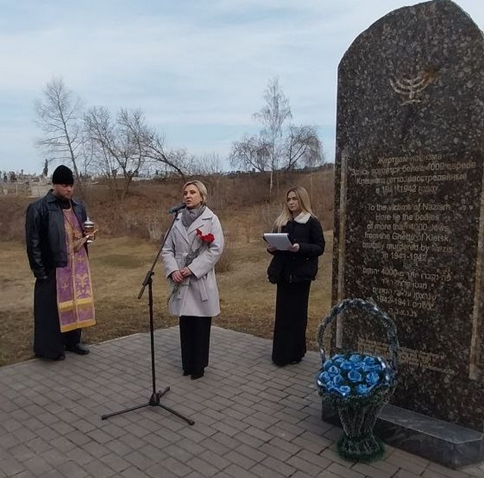 Благочинный Клецкого церковного округа иерей Андрей Евшель сказал приветственное слово и возгласил вечную память по жертвам геноцида.