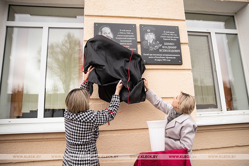 Право открыть мемориальную доску предоставили Алле Мелюк и Людмиле Соловей, директору Клецкой средней школы №2.