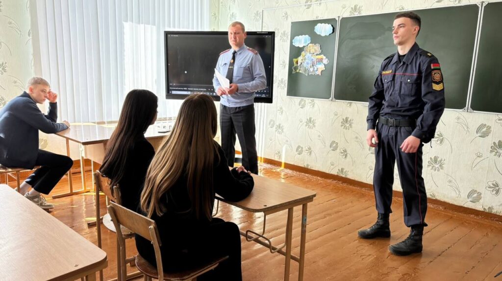 Начальник отдела охраны правопорядка и профилактики Клецкого РОВД Ковальков Александр Александрович совместно с курсантом 4 курса Могилевского института МВД Жданюком Дмитрием, провели профориентационную беседу с учащимися Яновичской средней школы.