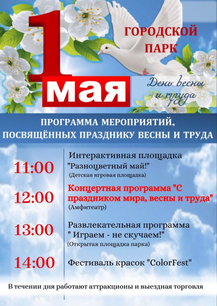 1 Мая в городском парке на детской игровой площадке малышню в 11.00 приглашают на развлекательный интерактив