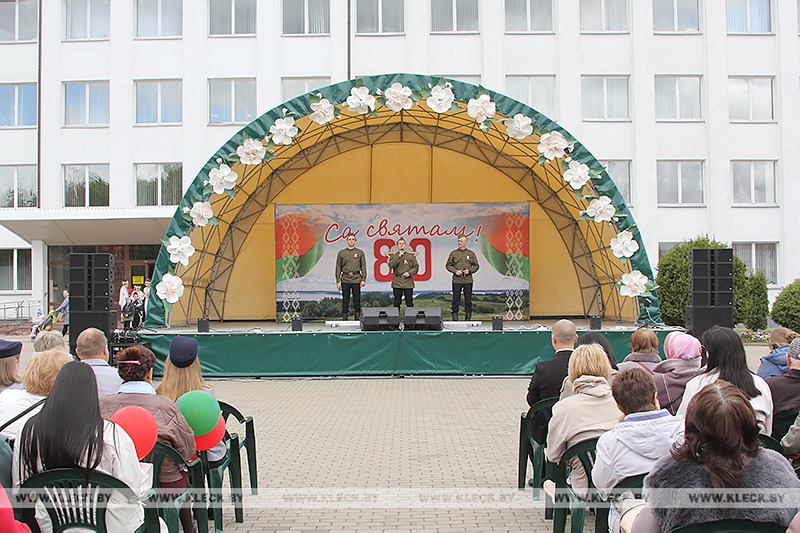 Песней о Победе программу «Подвигу народа жить в веках!» открыли участники мужского трио Клецкого РЦК, вызвав у зрителей громкие овации.