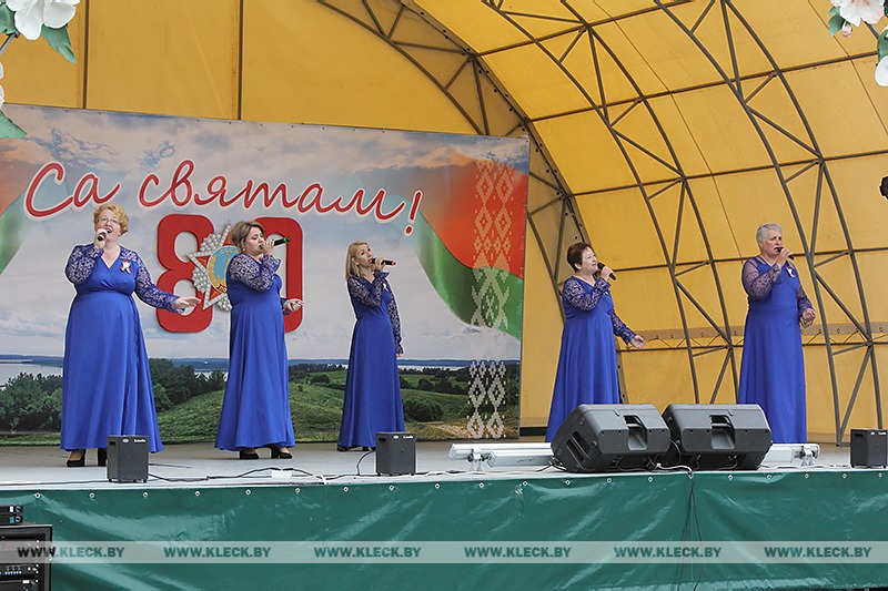 Великую, независимую и свободную страну песней из репертуара ансамбля «Сваякі» «Беларусь мая» прославляли Ю.Крицук, В.Зотова, В.Смирнова и Альберт Аква. И клетчане с этим согласились своими бурными аплодисментами.