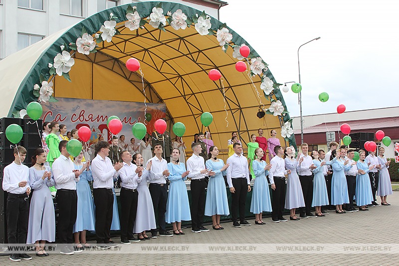 Праздничный дневной концерт на площади Маяковского уже давно стал традиционным, и к назначенному времени в центр Клецка стекается много людей.