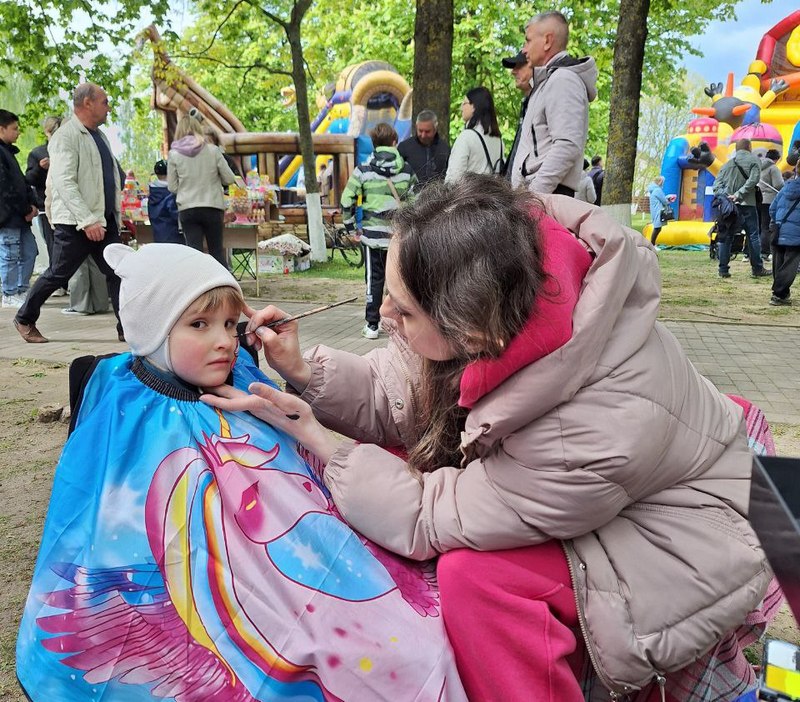 Популярностью у маленьких гостей праздника пользовалась зона с аквагримом, где девочки и мальчики с помощью умелых рук знаменитой нашей клетчанки Ольги Пилецкой могли превратиться в своих любимых персонажей.