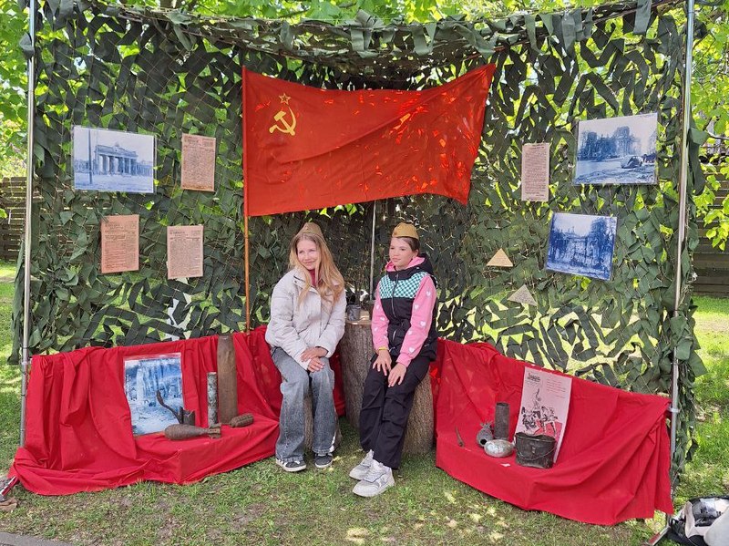 Сделать фото на память о сегодняшнем дне можно было на военно-тематических фотозонах, оформленных сотрудниками музея истории Клетчины.
