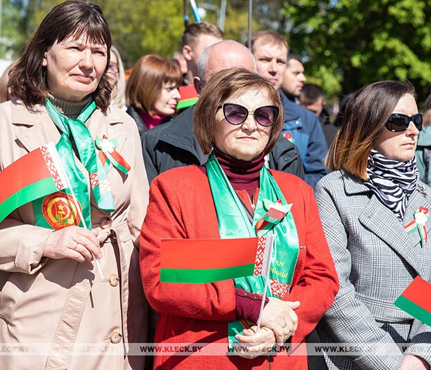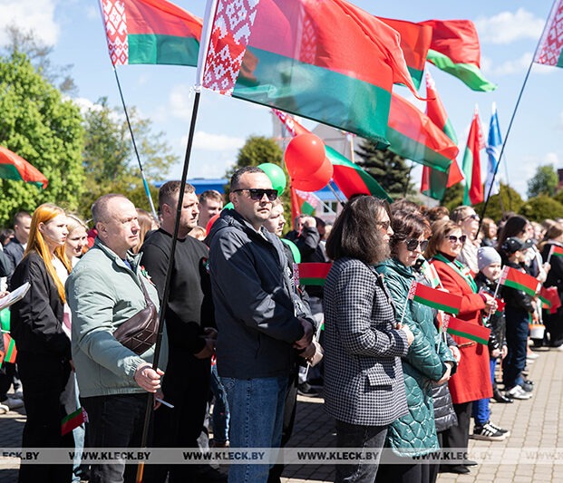 В 2021 году утвержден ритуал принесения клятвы верности к государственному флагу Республики Беларусь. Сегодня клятву произнесли молодые патриоты Клецкого района от имени сотен своих сверстников. Они клялись верности флагу и своей родине, пронести эти чувства через всю свою жизнь и передать будущим поколениям. В поздравление свои праздничные номера представили творческие коллективы района. В ходе праздника были награждены победители конкурса “80 лет нашими глазами”. Ими стали ОАО “Гамма вкуса” и ГУО “Гимназия г.Клецка. Также были награждены победители конкурса “80 добрых дел в память о Великой Победе 1941-1945” – ОАО “Клецкий мехзавод” и ГУО “Рассветовская средняя школа Клецкого района”.