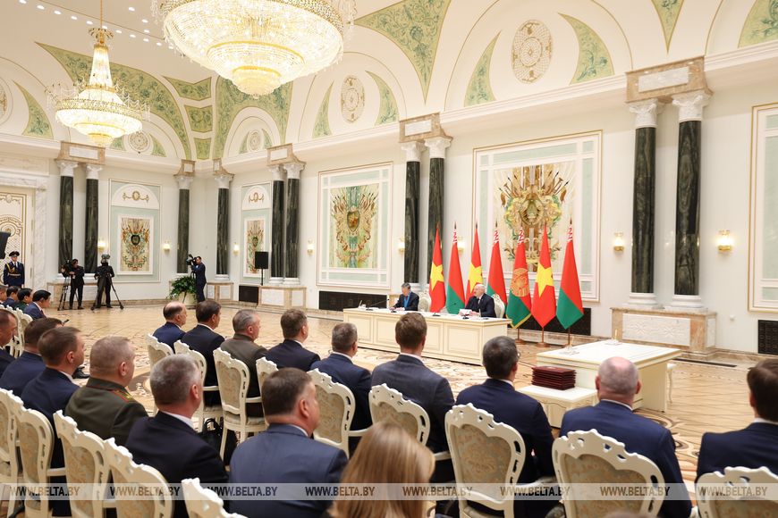 Лидеры Беларуси и Вьетнама Александр Лукашенко и То Лам по завершении переговоров в Минске приняли совместное заявление об установлении стратегического партнерства между двумя странами.