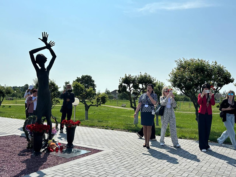 Представители СМИ возложили цветы у мемориального комплекса “Детям жертвам войны”.
