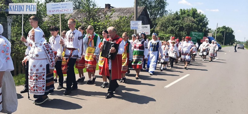 Образцовый ансамбль народной песни «Морочаночка» Морочского СДК продемонстрировал свои таланты в трех номинациях: «Траецкая песня», «Элементы абрадавага дзеяння», «Траецкая народная гульня». Они представили местный обряд «Сёмуха», где показали фольклорные песни, танцы и игру «Крапіва».