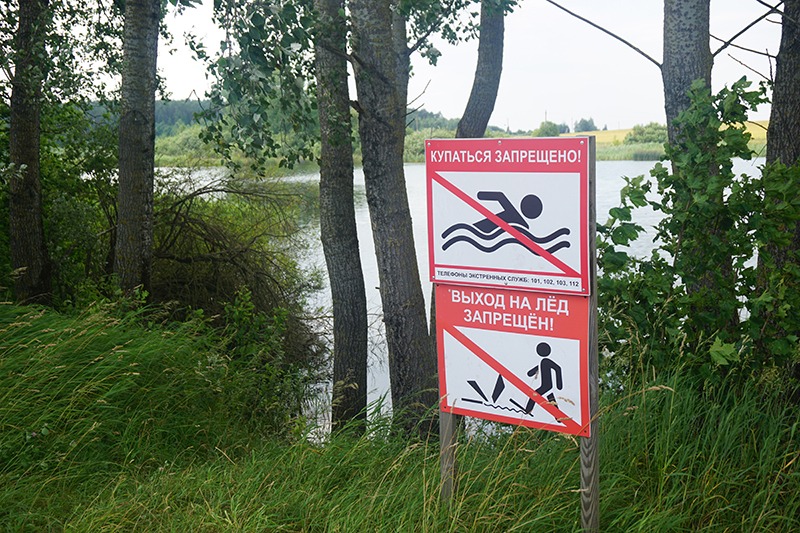 Несмотря на рабочий понедельник, были рыбаки и на водоеме в Красной Звезде. Здесь нас больше всего удивили и улыбнули установленные таблички с запретом не только на купание. Честно говоря, ни на одном водоеме еще не фиксировали, чтобы летом запрещали «выходить на лед»…