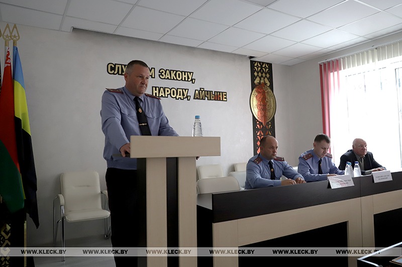 – Я хочу поблагодарить личный состав Клецкого РОВД за службу и пожелать только одного – продолжайте работать, – сказал Александр Худинский.