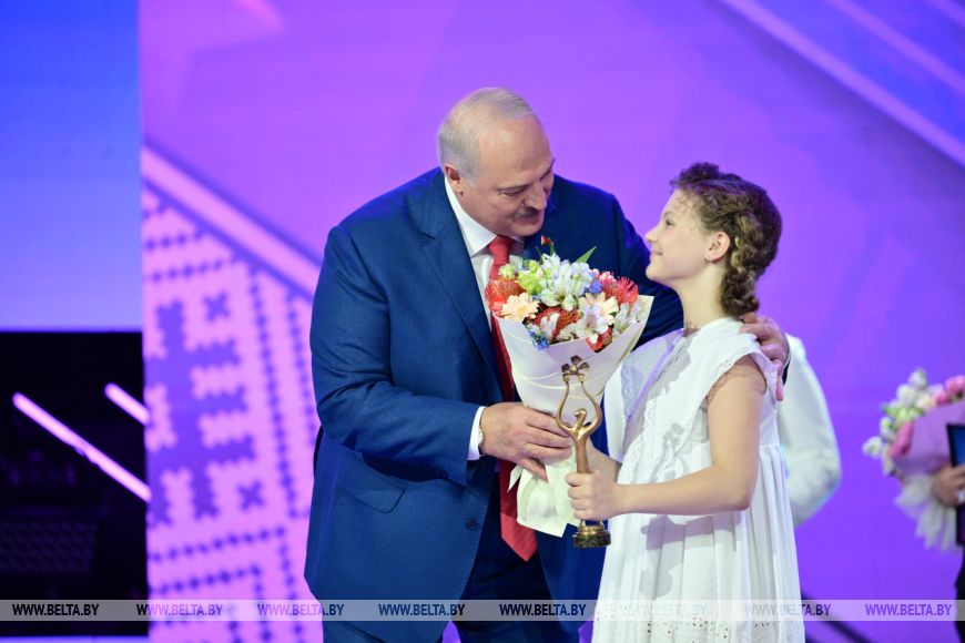 “Очень символично, что вместе с самыми юными исполнителями мы будем чествовать обладателя специальной премии Президента Беларуси. Премии, которая вручается за верное служение любимому делу, зрителю и его величеству искусству”, – заявил белорусский лидер.