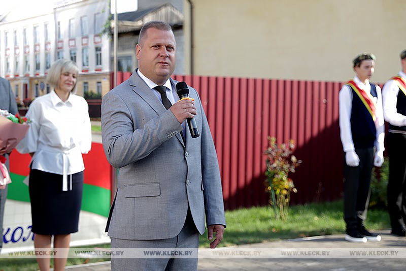 Председатель Клецкого райисполкома Юрий Карлович первым поздравил учеников СШ №2 и всех школьников района с началом нового учебного года: