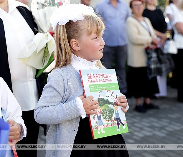 Будущие выпускники Клецкой СШ №2 напутствовали первоклассников и подарили книги от Президента «Беларусь — наша Радзіма».