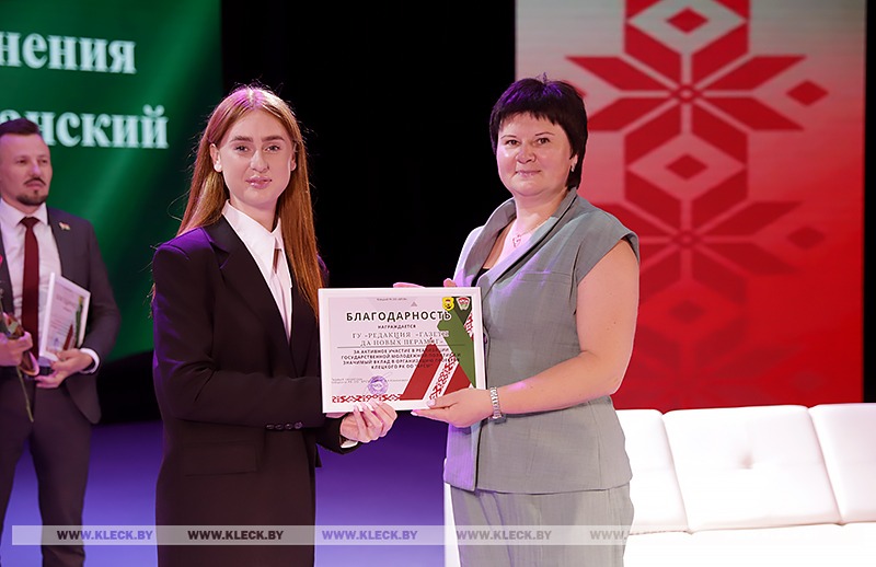 Награду за активное участие в реализации государственной молодежной политики и значимый вклад в организацию проектов ОО «БРСМ» получила редакция газеты «Да новых перамог».