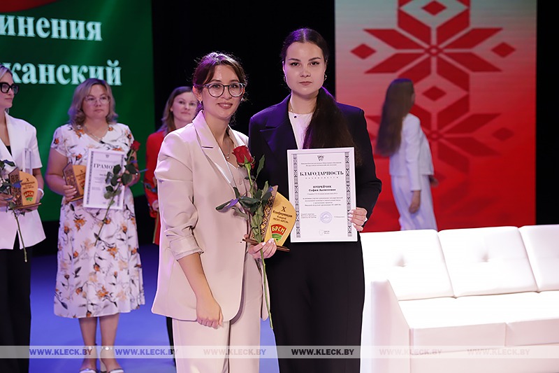 Первый секретарь Клецкого РК ОО «БРСМ» вручила памятные статуэтки и дипломы активистам райкома и трудовым коллективам, которые являются друзьями Белорусского республиканского союза молодежи.