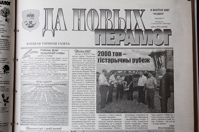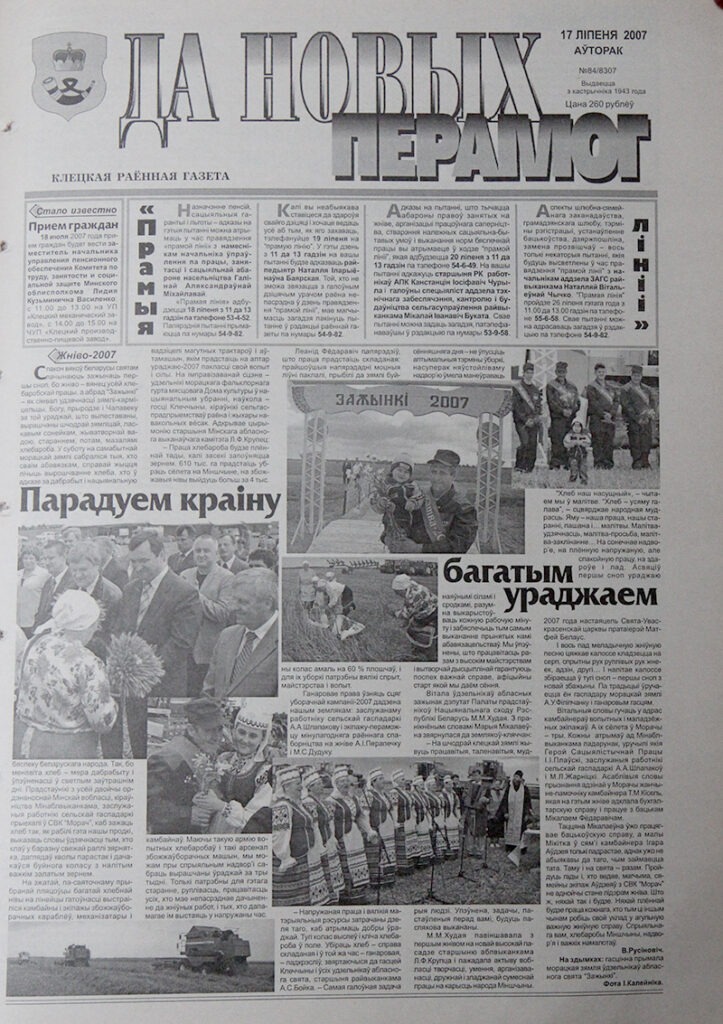 Заглянем на 40 гадоў наперад – у нумары раёнкі за 2007 год. Інфармацыя аб ходзе жніва размяшчаецца фактычна ў кожным нумары. Рэпартажы з гаспадарак цікавыя, змястоўныя.