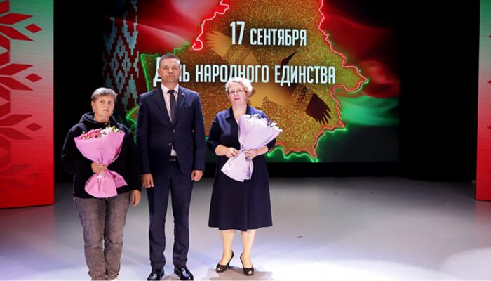 На сцене Клецкого РЦК поздравили жительниц района, которые празднуют День рождения 17 сентября, Екатерину Нупрейчик и Инну Романчук.
