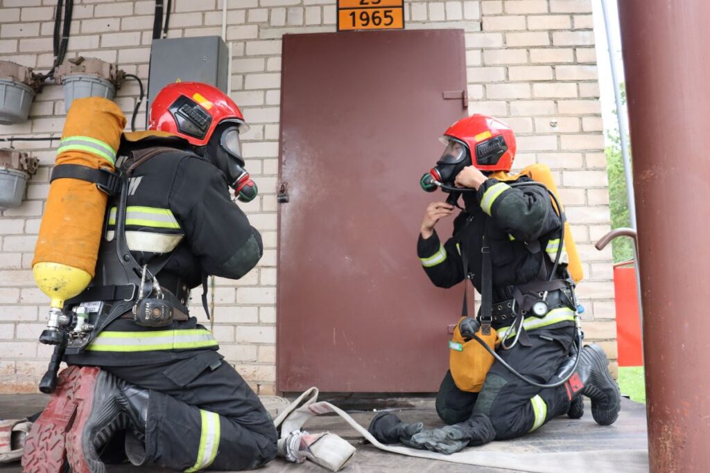 Учитывая угрозу взрыва газовых баллонов, спасатели работали в изолирующих противогазах, что обеспечивало их безопасность при выполнении задач в условиях задымления и потенциальной токсичности.